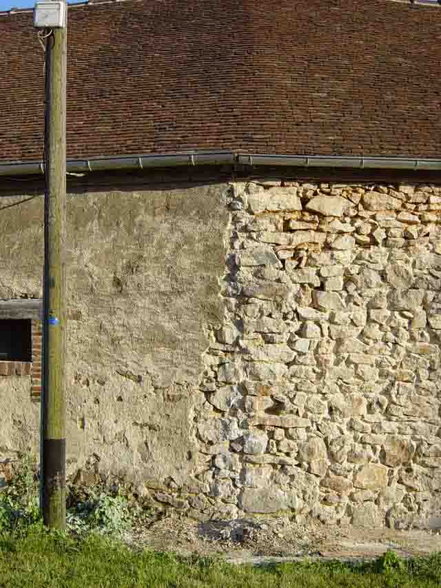 Les murs de cette batisse sont en pierre. Mais la pierre était cachée