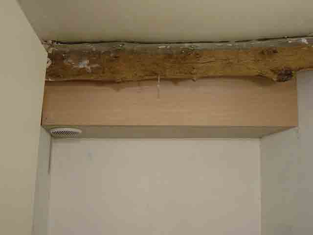 plafond, quand à lui, recouvert d'une sorte de coffrage en agglo. Lorsque